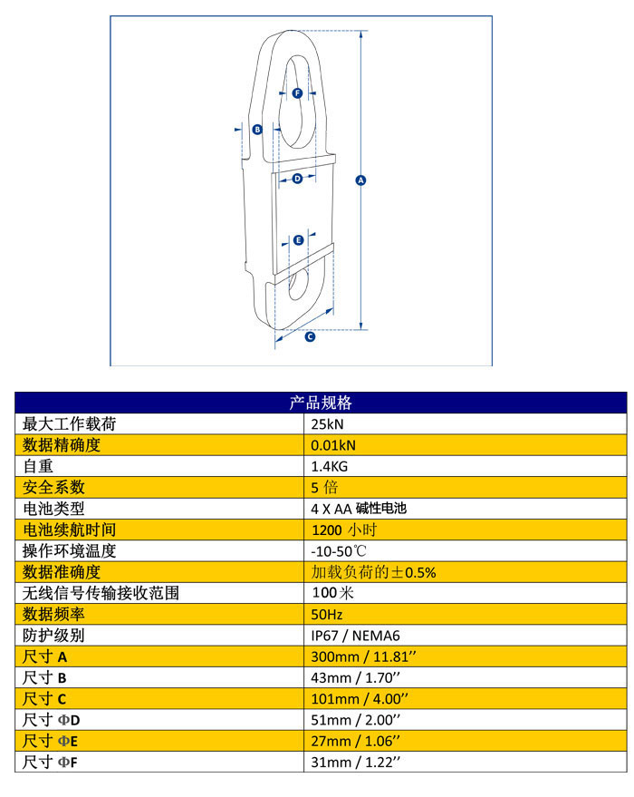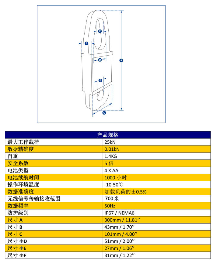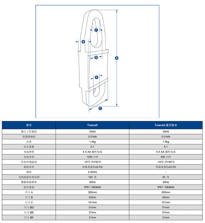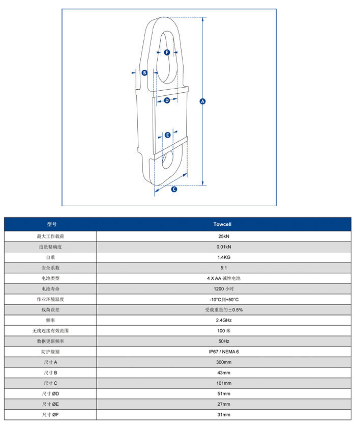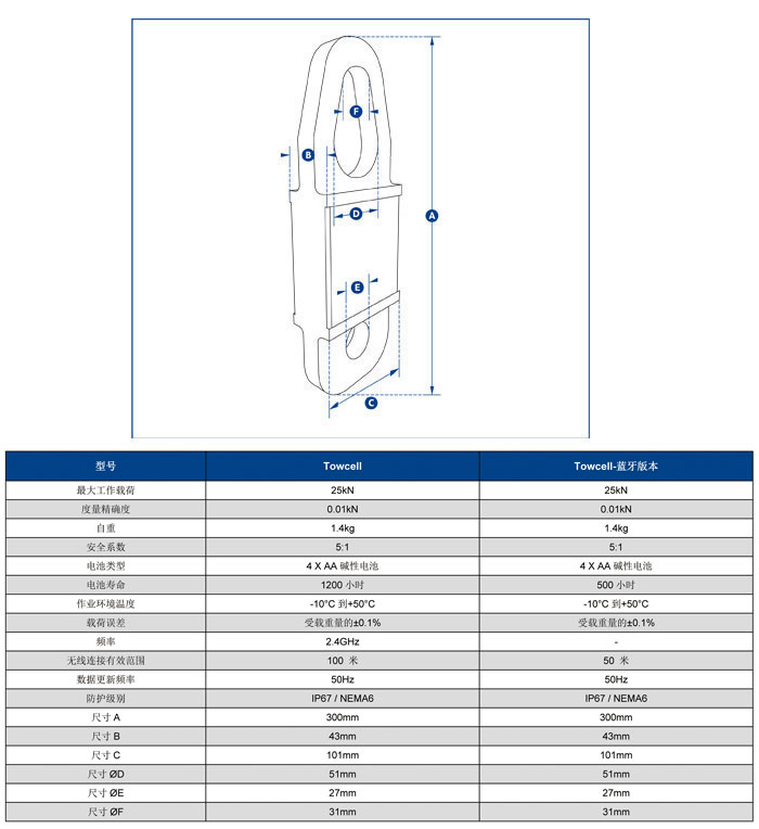 此產(chǎn)品的最大工作載荷為25kN(相當(dāng)于牽引質(zhì)量2.5噸),主體由航空用鋁合金材質(zhì)構(gòu)成,使其自重保持在更低的水平,更大程度方便使用者安裝操作和搬運移動。其內(nèi)部核心構(gòu)造現(xiàn)在采用了獨立式的密封防護構(gòu)造,使其防護等級達(dá)到IP67/NEMA6防水環(huán)境保護的要求,即便使用中電池封蓋丟失,設(shè)備仍可以繼續(xù)正常工作。利用兩節(jié)普通的堿性電池,設(shè)備續(xù)航能力便可達(dá)到1200小時。