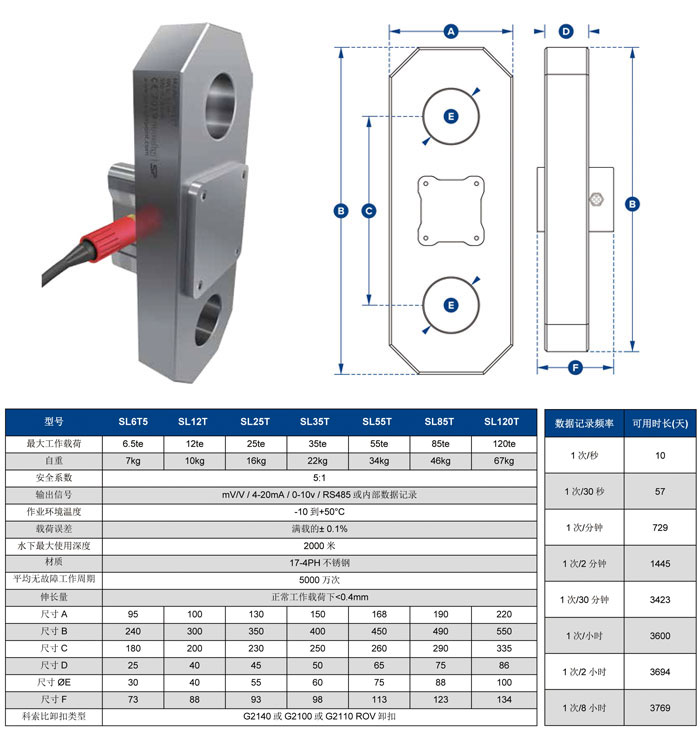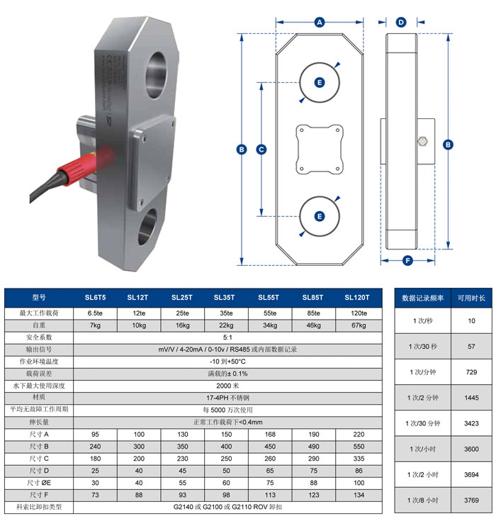 匹配Crosby ROV卸扣連接---這樣,遙控操作裝置可安裝在水下測力環(huán)(SL)本體上。