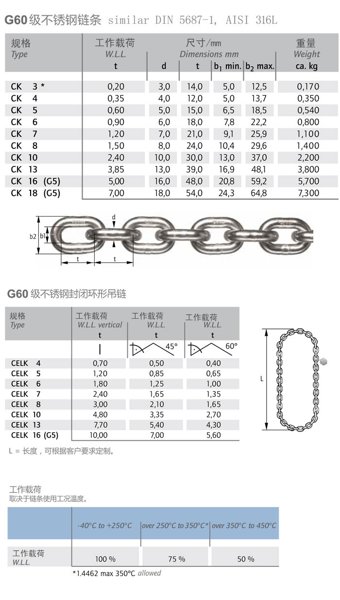 Cromox高強(qiáng)度不銹鋼吊裝鏈條