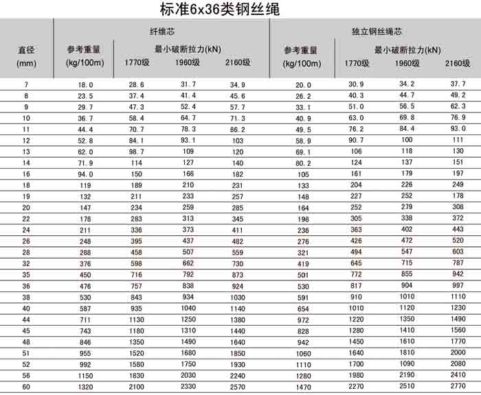 標(biāo)準(zhǔn)6*36類鋼絲繩