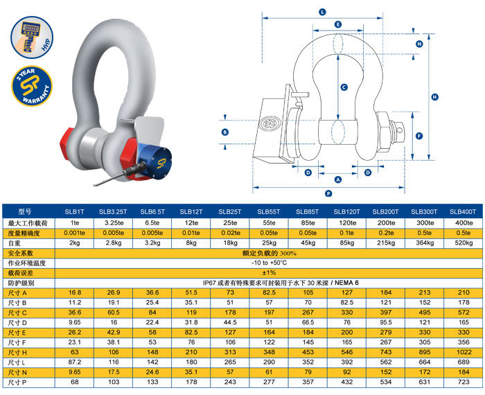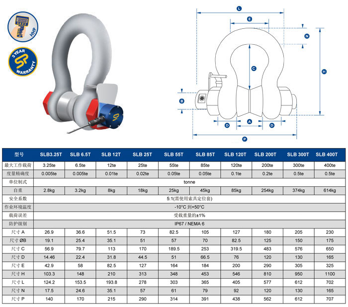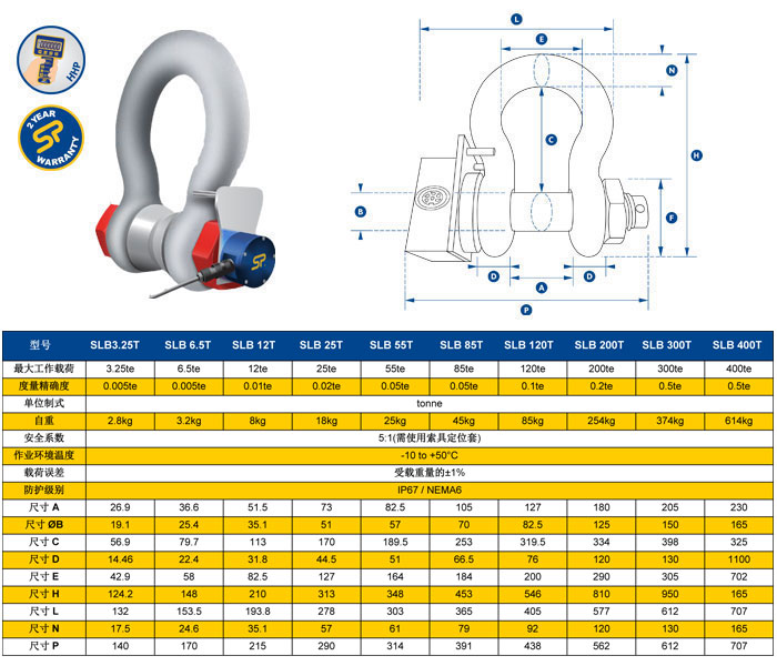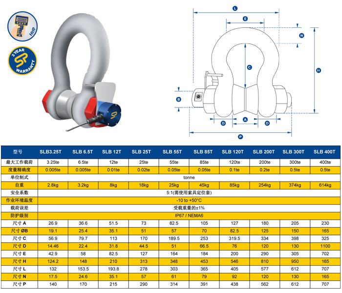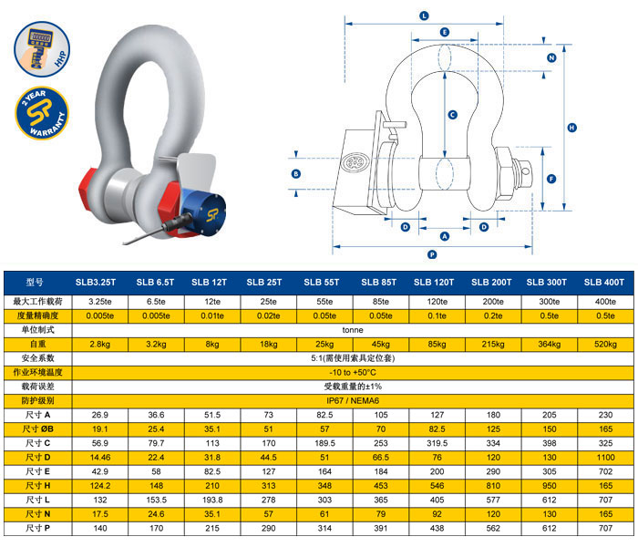 這款設(shè)備的標(biāo)準(zhǔn)負(fù)載能力范圍從3.25噸到400噸,特殊定制情況下可達(dá)到1550噸。對于負(fù)載能力低不超過120噸的設(shè)備,我們采用Crosby的G2130卸扣和G2140卸扣;對于負(fù)載能力超過120噸的設(shè)備,我們則采用GN的H10型卸扣。