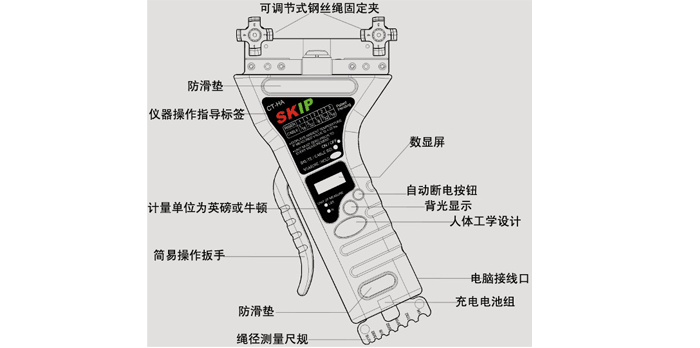 SKIP®手持型鋼絲繩張緊力數(shù)顯測量儀在實際應用中的性能表現(xiàn)是世界上非常好的,產(chǎn)品本身不僅經(jīng)久耐用,而且適合的用途非常廣泛,能夠滿足客戶在各類不同應用環(huán)境中的實際需求。與同類產(chǎn)品相比,SKIP®手持型鋼絲繩張緊力數(shù)顯測量儀的數(shù)值精確度要高出許多。美國的一些大型飛機制造廠商經(jīng)過一系列針對航空控制繩纜的實際測試和研究表明,CT-HA 型SKIP®手持鋼絲繩張緊力數(shù)顯測量儀所監(jiān)測和讀取的相關測試數(shù)據(jù),其精確度要比目前此行業(yè)標準要求的高出多達7倍!優(yōu)異的質(zhì)量以及性能表現(xiàn),是您選擇SKIP®手持型鋼絲繩張緊力數(shù)顯測量儀的理由。