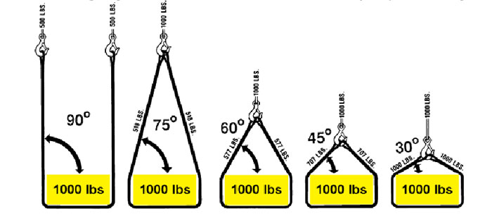 籃吊額定負(fù)載(WLL)是依據(jù)90°索具夾角而核定的。