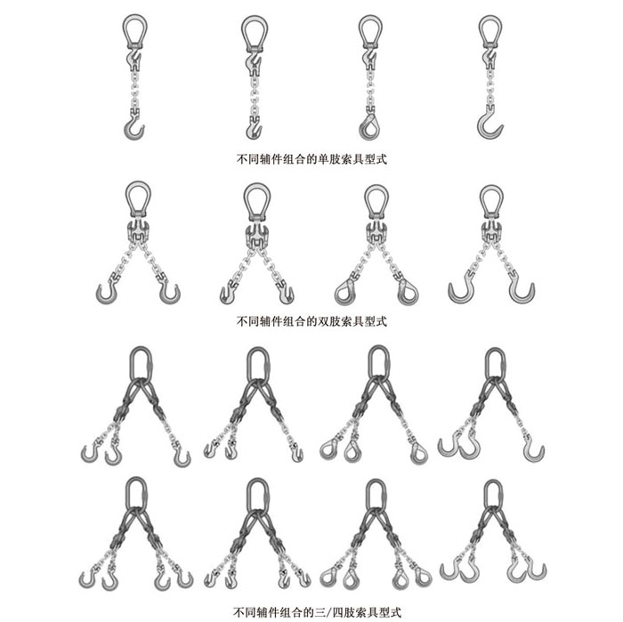 通常,吊裝鏈條索具(以下簡(jiǎn)稱“吊鏈”)是由主環(huán)、連接環(huán)、鏈條及吊鉤等輔件連接而成,如果在使用中需要調(diào)節(jié)吊鏈長(zhǎng)短的話,就需增加調(diào)節(jié)器來(lái)達(dá)到效果。這樣的吊鏈勢(shì)必會(huì)輔件多、自重大、成本高。集成主環(huán)集強(qiáng)力主環(huán),連接環(huán),抓鉤及調(diào)節(jié)器的主要特性和功能于一身。