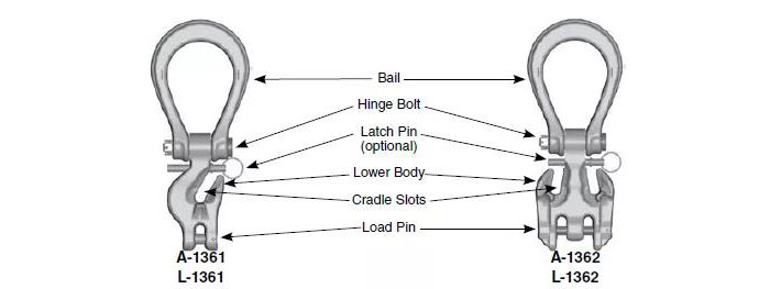 ● 根據(jù)OSHA,MSHA,ANSI/ASME B30.10和B30.9規(guī)則或安全使用碼使用安全銷(xiāo)。