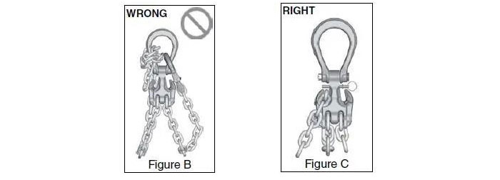 ● 不要將承重鏈條穿過(guò)基環(huán)以裝卸重物。(見(jiàn)fig B)