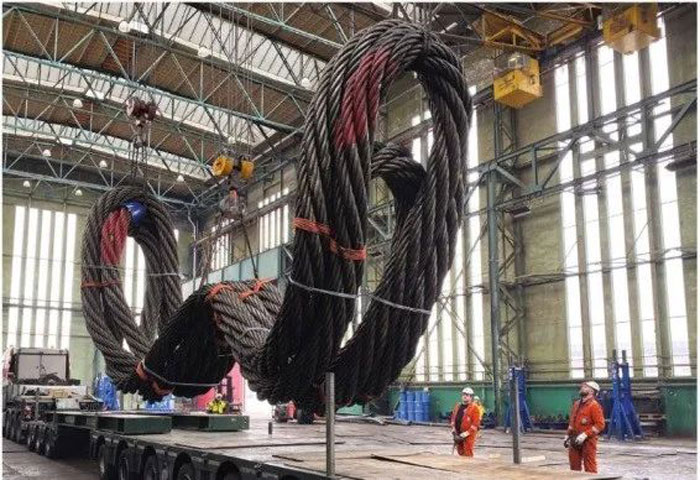 正如David Glennie解釋的那樣:“成功在于精確的計(jì)算—它決定了時(shí)間和成本。每根吊索有867米長(zhǎng),繩子和卷軸的總重量為90噸。單根繩股最小破斷載荷超過1550噸。我們的200噸的多輪載重輪進(jìn)行了安全的吊索操作!