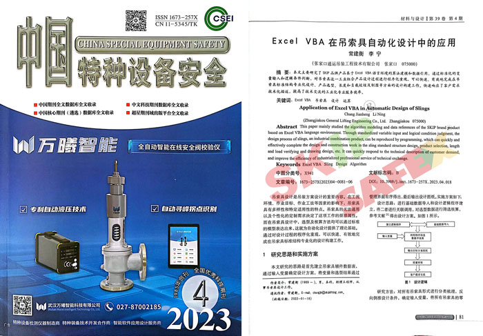 在遠(yuǎn)古時(shí)期,人類就學(xué)會(huì)了利用杠桿原理進(jìn)行簡(jiǎn)單的吊裝作業(yè)以滿足生活需要。后來(lái)隨著技術(shù)的進(jìn)步,我們學(xué)會(huì)了使用更加精巧的結(jié)構(gòu)借助自然之力(水力,風(fēng)力等)進(jìn)行生產(chǎn),F(xiàn)代,我們已經(jīng)可以通過(guò)科技的力量進(jìn)行大規(guī)模建設(shè),這是吊裝水平的提高,更是人類生產(chǎn)力的進(jìn)步! 可以說(shuō)只要有吊裝作業(yè)的地方,就會(huì)有吊裝索具。在未來(lái),隨著對(duì)生產(chǎn)力要求的持續(xù)提升,越來(lái)越復(fù)雜的應(yīng)用場(chǎng)景會(huì)對(duì)我們的工程師提出更多的難題,索具行業(yè)的發(fā)展正在迎來(lái)新的契機(jī),我認(rèn)為將會(huì)體現(xiàn)在以下幾個(gè)方面:解決問(wèn)題需要先將問(wèn)題分解再簡(jiǎn)化整合。經(jīng)過(guò)上百年的發(fā)展,對(duì)于索具產(chǎn)品的基礎(chǔ)功能分解已非常成熟,越來(lái)越多的供應(yīng)商正在考慮將不同成熟的應(yīng)用組合形式集成化,以簡(jiǎn)化操作,使索具輕量化,對(duì)于這個(gè)問(wèn)題,這是除了不斷突破材質(zhì)性能極限外(同尺寸質(zhì)量更小)的另一條可行途徑。索具的智能化進(jìn)程在很久以前就已經(jīng)開(kāi)始,并將在未來(lái)不斷持續(xù)、深化下去。近年隨著各地基礎(chǔ)設(shè)施的建設(shè),尤其是數(shù)據(jù)通訊產(chǎn)業(yè)升級(jí),為遠(yuǎn)程實(shí)時(shí)遙感監(jiān)控帶來(lái)可能,配合不斷涌現(xiàn)的諸如負(fù)載動(dòng)態(tài)監(jiān)測(cè)、姿態(tài)控制設(shè)備等新產(chǎn)品和技術(shù),相信智能化吊裝產(chǎn)品會(huì)越來(lái)越多地得到應(yīng)用。吊索具的使用者除了得到產(chǎn)品本身,還能得到什么?這是一個(gè)值得研究的問(wèn)題。對(duì)于吊索具這樣一個(gè)工業(yè)細(xì)分領(lǐng)域來(lái)說(shuō),使用者通過(guò)投入足夠多的內(nèi)部管理時(shí)間和精力來(lái)控制隱性的生產(chǎn)安全成本是不現(xiàn)實(shí)的,這就需要外部的專項(xiàng)服務(wù)方案來(lái)解決問(wèn)題,而這正是我們所專注的。SKIP和SAFEX可以有效減少起重設(shè)備的風(fēng)險(xiǎn)負(fù)擔(dān),為您帶來(lái)安心,高質(zhì)量并可追溯的產(chǎn)品以及專業(yè)高標(biāo)準(zhǔn)的服務(wù)為您的吊裝作業(yè)安全帶來(lái)充分保證。我們的服務(wù)內(nèi)容,更多地是投射到終端的現(xiàn)場(chǎng)作業(yè)中。在很多情況下,產(chǎn)品廠家對(duì)于產(chǎn)品使用和維護(hù)的詳細(xì)指導(dǎo)以及相關(guān)標(biāo)準(zhǔn)并不能充分傳遞給一線作業(yè)人員,同時(shí)也包括管理職能人員,EHS和現(xiàn)場(chǎng)負(fù)責(zé)人。我們的培訓(xùn)服務(wù)通過(guò)專業(yè)定制化的課程講解,對(duì)吊索具產(chǎn)品全生命周期內(nèi)的相關(guān)事件進(jìn)行了逐一梳理,為您在這一細(xì)分安全專項(xiàng)管理內(nèi)容提供有效的專業(yè)知識(shí)和工作指導(dǎo)。同時(shí),我們也致力于完善索具生命周期內(nèi)的質(zhì)量檢測(cè)體系,為您提供專業(yè)系統(tǒng)的吊索具在用產(chǎn)品特別計(jì)劃/周期性檢測(cè)服務(wù),實(shí)現(xiàn)您EHS管理體系在工業(yè)安全風(fēng)險(xiǎn)識(shí)別的專業(yè)細(xì)節(jié)覆蓋。 SKIP在吊裝索具設(shè)計(jì)自動(dòng)化方向的積極實(shí)踐探索我們一直在探索基于多樣性需求的吊索具產(chǎn)品應(yīng)用組合設(shè)計(jì)自動(dòng)化的解決方法并做出了一些有益的實(shí)踐。比如最近我司在《中國(guó)特種設(shè)備安全》上發(fā)表的一篇文章——《Excel VBA在吊索具自動(dòng)化設(shè)計(jì)中的應(yīng)用》中就較為具體地闡述了自動(dòng)化理念在吊索具設(shè)計(jì)過(guò)程中的實(shí)踐應(yīng)用。 文章主要研究了SKIP品牌產(chǎn)品基于Excel VBA 語(yǔ)言環(huán)境的算法建模和數(shù)據(jù)引用,通過(guò)標(biāo)準(zhǔn)化的變量輸入和邏輯條件判斷,對(duì)吊索具這一工業(yè)組合產(chǎn)品設(shè)計(jì)過(guò)程進(jìn)行程序化重現(xiàn),可以快速、有效完成在吊索具標(biāo)準(zhǔn)結(jié)構(gòu)專業(yè)化設(shè)計(jì),產(chǎn)品選型,長(zhǎng)度和負(fù)載校核及制圖等方面的設(shè)計(jì)構(gòu)建工作。快速響應(yīng)了客戶需求技術(shù)化描述,提高了技術(shù)交流的工業(yè)化專業(yè)服務(wù)效率。通過(guò)Excel VBA 環(huán)境對(duì)設(shè)計(jì)過(guò)程標(biāo)準(zhǔn)化、程序化、規(guī)范化,可以有效輔助一般常規(guī)吊索具的設(shè)計(jì)工作,提高工作效率,校驗(yàn)設(shè)計(jì)結(jié)果,對(duì)于小批量,定制化的吊索具自動(dòng)化設(shè)計(jì)工具的進(jìn)一步開(kāi)發(fā),提高工業(yè)行業(yè)供需交流的規(guī)范化程度具有參考意義。